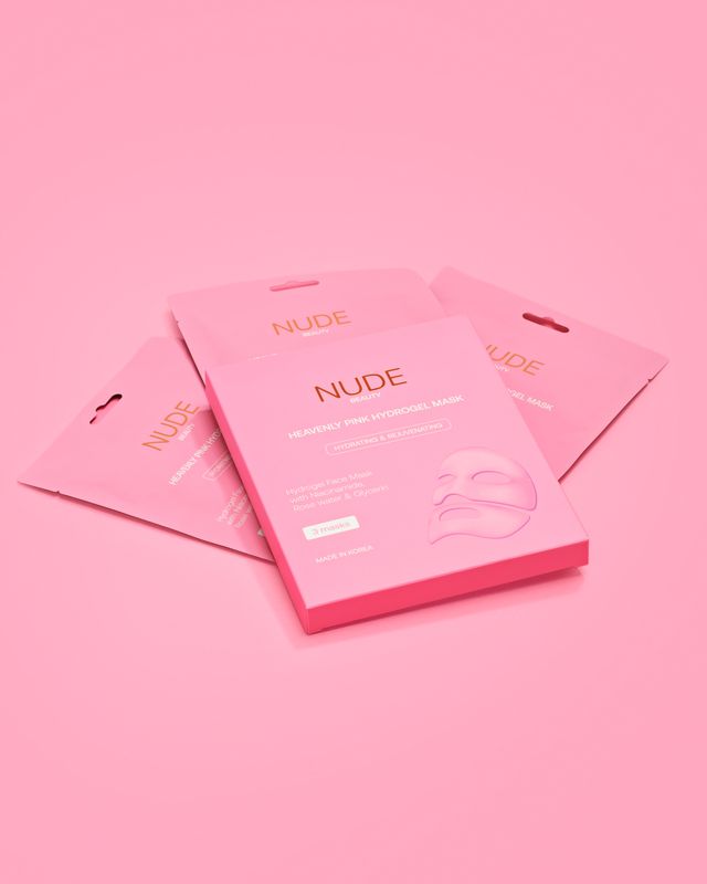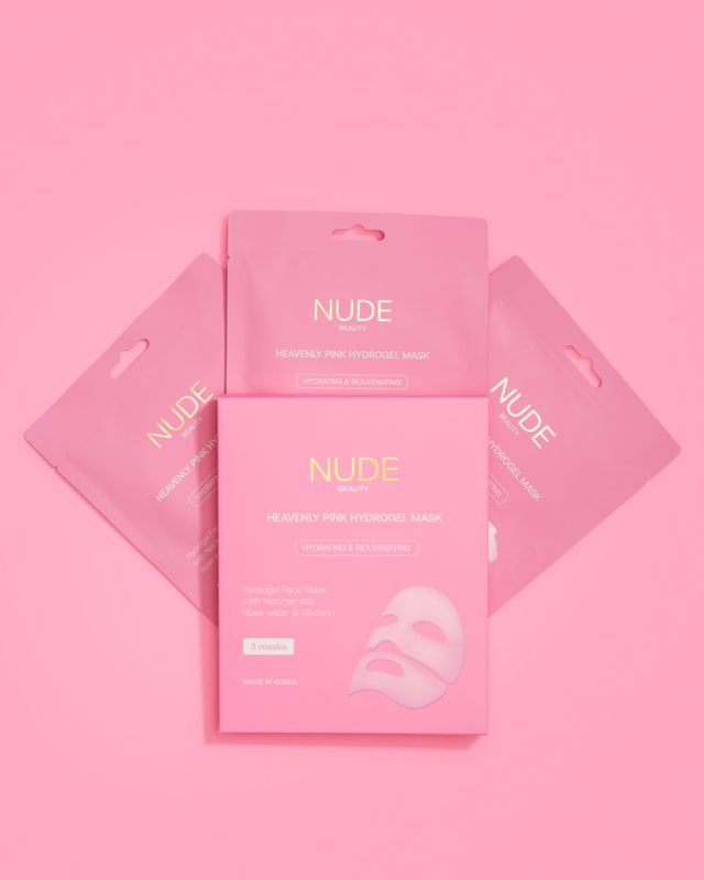 Oppdag Nude Beauty sin Heavenly Pink Hydrogel ansiktsmaske – nå i en pakke på 3 stk. Denne luksuriøse to-delte hydrogelmasken gir huden din et skikkelig fuktighetsboost og en jevnere, mer strålende hudtone.