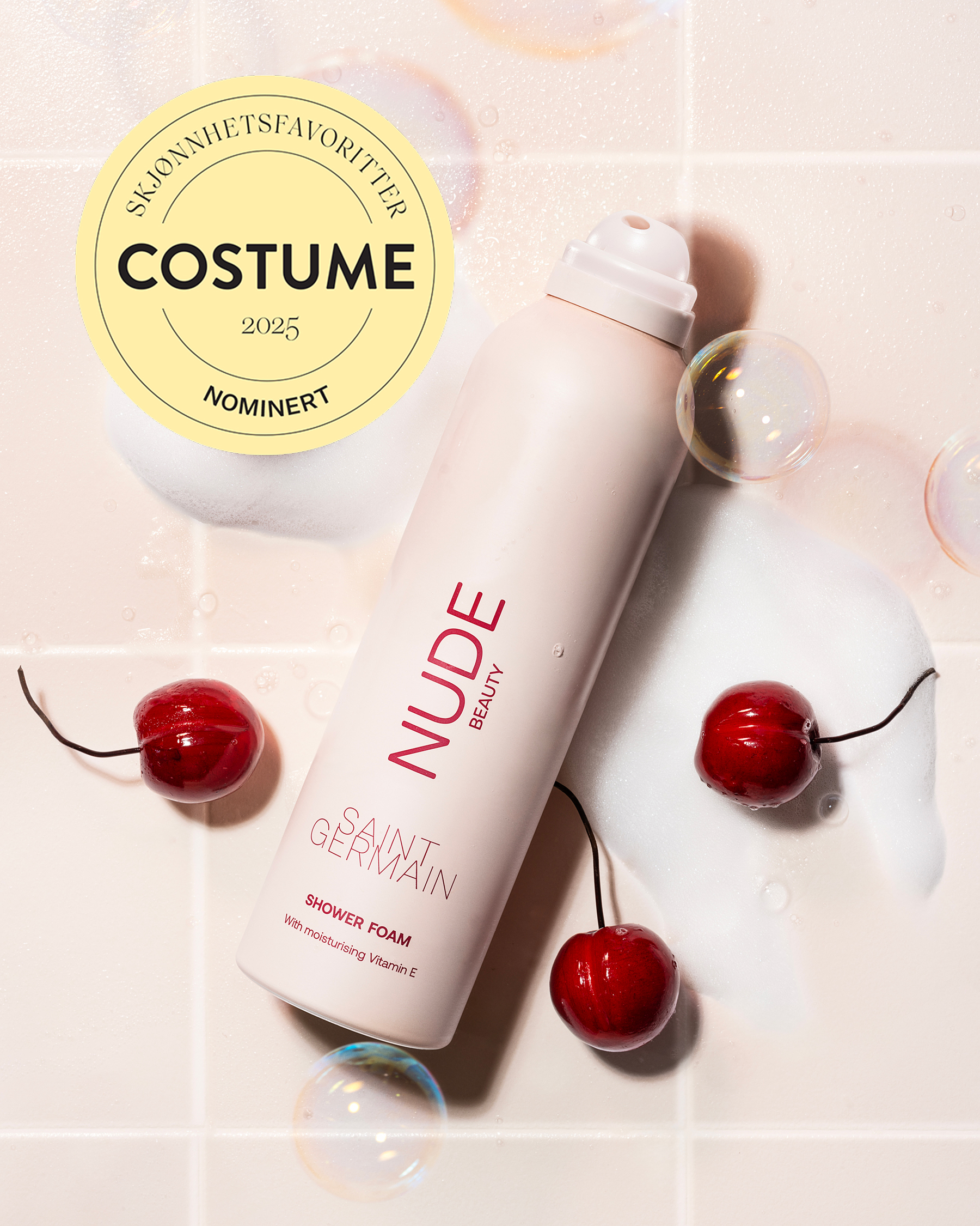 Få en sensorisk dusjopplevelse med dusjskum fra Nude Beauty. Dusjskummet er tilsatt den bestselgende duften «Saint Germain», med noter av kirsebær, jasmin og sandeltre. Når produktet kommer i kontakt med vann dannes et silkemykt skum som skånsomt rengjør og etterlater huden myk og velduftende. Inneholder vitamin E som tilfører huden fukt og styrker hudbarrieren.